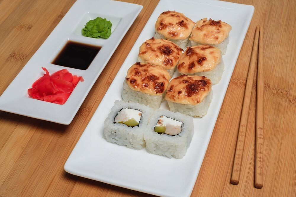 Рис, курица, криспи, соленый огурец, сырный соус.
