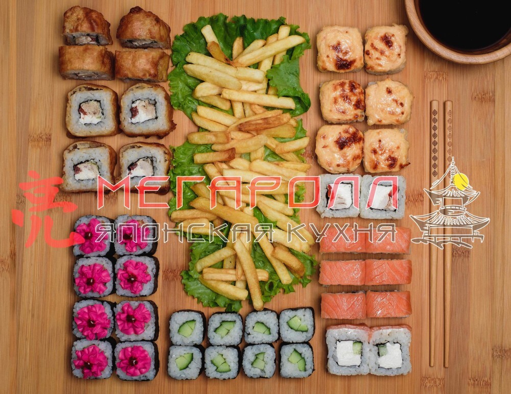 Филадельфия, Жаркий краб, Лава запеченный, Цезарь в кляре, Ролл с огурцом, Картофель фри.