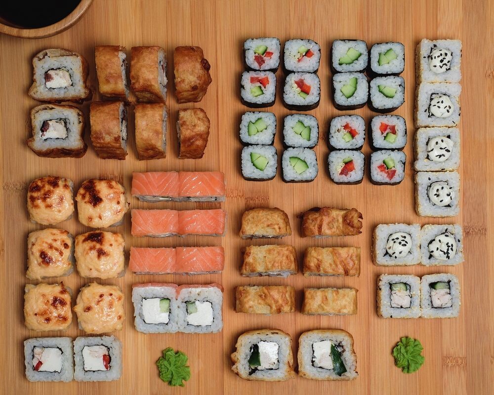 Цезарь в кляре, Лава Запеченый, Филадельфия, Тори, Ясай, Императорский с курицей, Ролл с огурцом.