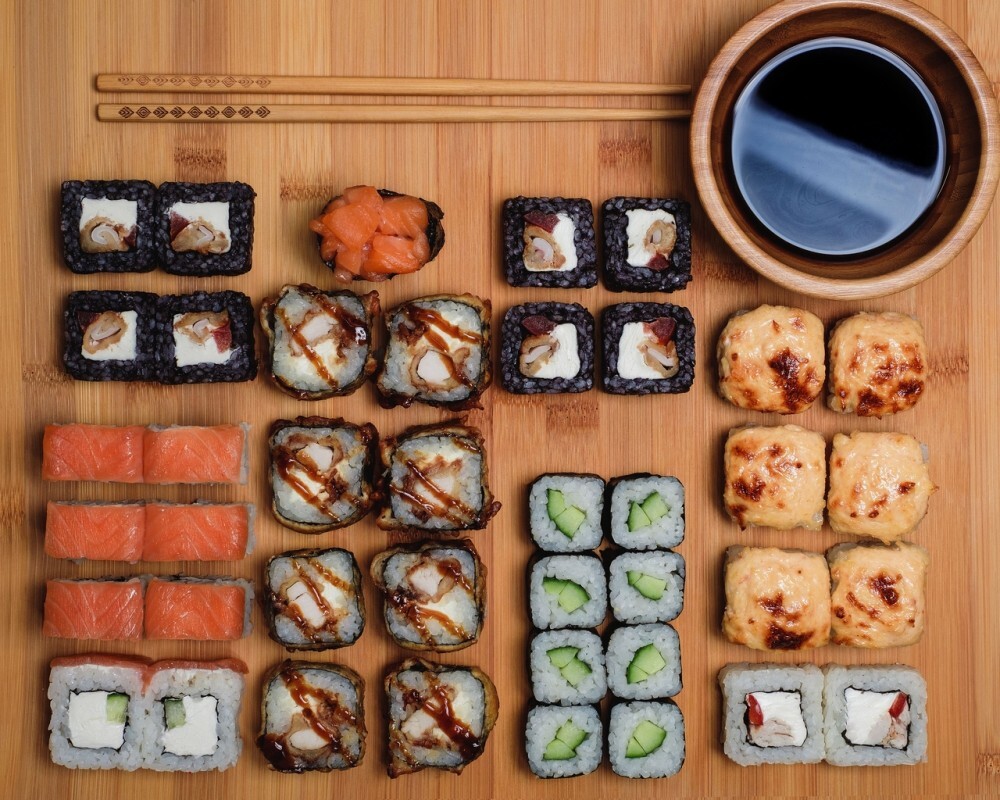 Лава запеченный, Хрустящий горячий, Ролл с огурцом, Суши с лососем, Блек, Филадельфия.